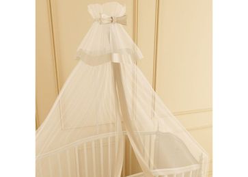 Праздничный и нарядный балдахин-сетка станет украшением любой детской кроватки и комнаты. None
