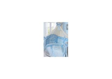 Очень красивый и нежный комплект в кроватку, состоящий из 10 предметов. В состав входит: кружевной балдахин (560 х 170см); подматрасник (юбка) (125 х 65см); бортик на кроватку (360 х 40см) (4 части); одеяло (108 х 140см); подушка (40 х 60см); наволочка (40 х 60см); пододеяльник на молнии(110 х 145см); простыня на резинке (100 х 150см); банты 2 шт. Материал -100% натуральный - сатин (простыня и пододеяльник с наволочкой), атлас и кружево, ручная вышивка. Наполнитель-холлофан. Набор в подарочном чемодане, размер: 71 х 51 х 27 см . Цвет: арт. 1562 - голубой, арт. 1563 - молочный, арт. 1566 - розовый. None Есть доставка.