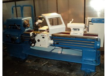 Токарно-винторезный станок 1К62 является универсальным станком и предназначен для выполнения разнообразных токарных работ, в том числе для нарезания левых и правых резьб: метрических, дюймовых, модульных, питчевых и архимедовой спирали с шагом 3/8, 7/16, 8. 10 и 12 мм. Токарно-винторезный станок 1К62 может использоваться для обработки закаленных заготовок, так как шпиндель станка установлен на специальных подшипниках, обеспечивающих его жесткость. Токарная обработка разнообразных материалов может производиться с ударной нагрузкой без изменения точности обработки. Высокая мощность главного привода станка, большая жесткость и прочность всех звеньев кинематических цепей главного движения и подач,виброустойчивость, широкий диапазон скоростей и подач позволяют выполнять на токарно-винторезном станке 1К62 высокопроизводительное резание твердосплавным и минералокерамическим инструментом. Станок 1К62 относится к лобовым токарным станкам, т.е. позволяет обрабатывать относительно короткие заготовки большого диаметра. Конструкция задней балки токарного станка позволяет осуществлять поперечное ее смещение, благодаря чему на станке может осуществляться обработка пологих конусов. Есть возможность соединения задней балки и нижней частью суппорта с помощью специального замка, что иногда требуется при сверлении задней балкой и использовании механического перемещения балки от суппорта. На токарный станок 1К62, могут устанавливаться следующие люнеты: подвижный, диаметр установки которого 20-80мм, и неподвижный, его диаметр установки 20-130мм. Зубчатые колеса, служащие для передачи движения от передней бабки к коробке передач, на станке 1К62 являются сменными. Продольное перемещение каретки станка 1К62 может быть ограничено специальным упором, устанавливаемым на передней полке станины. Таким образом, при установленном упоре, скорость движения суппорта не может превышать 250мм/мин. Максимальный диаметр заготовки при установке над станиной 400мм. Максимальный диаметр прутка, кото