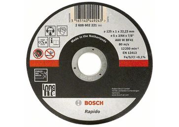 - Bosch Диск отрезной по металлу Bosch INOX 125 Х1 RAPIDO 2608602221 по выгодной цене 100 р. руб.;