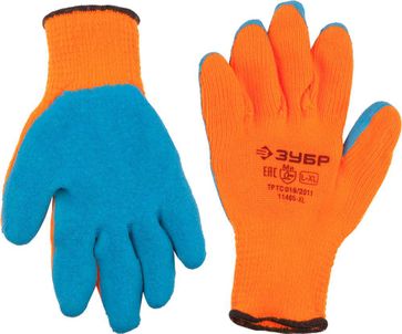 - Перчатки ЗУБР утепленные, акриловые, с рельефным латексным покрытием, 10 класс, сигнальный цвет, L-XL по выгодной цене 220 р. руб.;