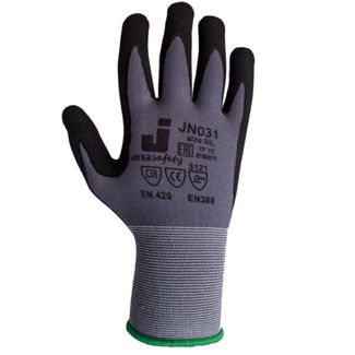 Защитные перчатки с тонким нитриловым покрытием, серый черный, 1 пара, M, JN031, JetaSafety