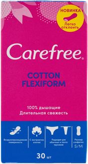 - Carefree Cotton Flexiform с Экстрактом Хлопка 30 прокладок в пачке по выгодной цене 379 р. руб.;