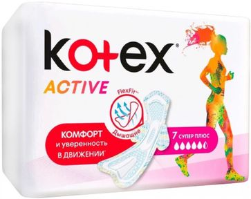 - Котекс Active Супер Плюс 7 прокладок в пачке по выгодной цене 165 р. руб.;