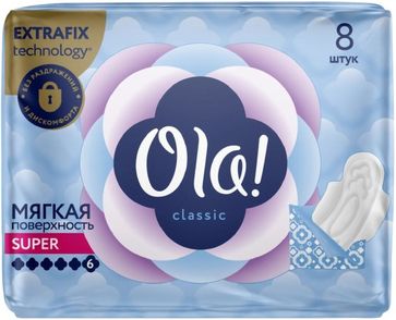 - Ola! Classic Super 8 прокладок в пачке мягкое покрытие по выгодной цене 102 р. руб.;