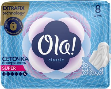 - Ola! Classic Super 8 прокладок в пачке сеточка по выгодной цене 102 р. руб.;