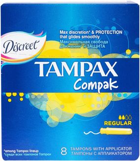 - Тампакс Compak Regular 8 тампонов в пачке по выгодной цене 239 р. руб.;