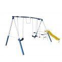 DFC 74201 Детский комплекс с горкой Технические характеристики: . Для детей от 3 до 8 лет . Максимальное количество детей одновременно: 6 . Материалы: каркас - сталь, спускной желоб - пластик, сиденье качели - пластик . Пластмасса: устойчивая к воздействию солнечных лучей . Длина спускного желоба: 150 см . Основные стойки комплекса в нижней части закрыты защитными трубками . Гайки крепления для безопасности закрыты пластиковыеми заглушками . Для крепления комплекса необходимо отдельно приобрести комплект анкеров (не входят в комплект поставки) . Артикул: 74201 . Гарантия: 1 год . Торговая марка: Россия . Страна изготовления: Китай . Максимальная нагрузка на комплекс: 272 кг Размеры и вес в упаковке: 145 х 45 х 30 см / 40 кг Размеры (Д.Ш.В.): 325 х 236 х 191 см Вес: 35 кг Описание: Детский комплекс с горкой DFC 74201 предназначен для детей в возрасте от 3 до 8 лет. Детский игровой комплекс подходит для установки на детской площадке или дачном участке. Детский комплекс DFC 74201 состоит из: качели, качели-балансира, горки, качалки на руках. Cидение для качелей изготовлены из пластика устойчивого к воздействию солнечных лучей. Материал спускного желоба - пластик. Ваша семья обеспечена радостью и отличным настроением. Рекомендуемая поверхность для установки комплекса: древесная мульча или опилки, песок или мелкий гравий. Для крепления комплекса необходимо отдельно приобрести комплект анкеров (не входят в комплект поставки). Интернет магазин SportLife предлагает подготовится к новому сезону и приобрести по выгодной цене детский комплекс с горкой DFC 74201 с доставкой в любой город России. None Есть доставка.
