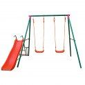 DFC MSS-01 Детский комплекс с горкой Технические характеристики: . Для детей от 3 до 10 лет . Материалы: каркас - сталь, горка, спускной желоб и сиденье - пластик . Пластмасса: устойчивая к воздействию солнечных лучей . Верхняя труба: 50,8 x 2 мм . Опора: 45 x 1,5 мм . Боковые трубки: 25,4 x 1,0 мм . Поручни и ступени лестницы: труба 25,4 х 1,0 мм . Порошковое покрытие металлических поверхностей . Регулируемые по высоте веревки для качелей . Литая конструкция спускного желоба обеспечивает надежную опору горки . Артикул: MSS-01 . Гарантия: 1 год . Торговая марка: Россия . Страна изготовления: Малайзия . Максимальный вес одного ребенка: 35 кг В комплекте: . Качели веревочные - 2 шт . Горка Размеры и вес в упаковке: 178 х 37 х 24 см / 35 кг Размеры спускного желоба (Д.Ш.В.): 177 х 36,5 х 24,5 см Размеры (Д.Ш.В.): 284 х 188 х 296 см Вес: 33 кг Описание: Детский комплекс с горкой DFC MSS-01 для весёлого время препровождения на открытом воздухе состоит из верёвочных качелей (2 шт) и горки. Отлично подойдет для установки на улице, в парке или на даче. Идеально подходит для многодетных семей и для семей, которые любят собираться большими компаниями. На данной модели будет интересно заниматься детям от 3 до 10 лет! Компактная конструкция включает в себя А-образные металлические стойки и верхнюю трубу с креплениями для качелей. Для надежности А-образные трубы соединены боковыми трубками. Прочная стальная конструкция качелей с верхней трубой 50,8 х 2 миллиметра обеспечивает безопасность раскачивания. Спускной желоб и сиденье выполнены из экологически чистого пластика, устойчивого к воздействию солнечных лучей. Крепление веревочных сидений и их регулировка по высоте осуществляется изменением длины веревок. Стойки опоры выполнены из стали с повышенной прочностью диаметром 45 миллиметров. Для обеспечения безопасности на горке предусмотрена лестница и поручни. Металлические части конструкции покрыты порошковой краской, защищающей от царапин, сколов и влияния атмосферных яв