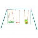 DFC SBN-02 Детский комплекс Технические характеристики: . Для детей от 3 до 10 лет . Материалы: каркас - сталь, сиденье - пластик . Пластмасса: устойчивая к воздействию солнечных лучей . Верхняя труба: 50,8 x 2 мм . Опора: 45 x 1,5 мм . Боковые трубки: 25,4 x 1,0 мм . Регулируемые по высоте веревки для качелей . Сборная конструкция детских качелей упрощает процесс сборки игрового комплекса . Порошковое покрытие металлических поверхностей . Артикул: SBN-02 . Гарантия: 1 год . Торговая марка: Россия . Страна изготовления: Малайзия . Максимальная нагрузка на одну качелю: 35 кг В комплекте: . Веревочные качели (без спинки) . Качели-гнездо . Качели для детей Размеры и вес в упаковке: 155 х 39 х 26 см / 32 кг Размеры (Д.Ш.В.): 352 х 156 х 196 см Вес: 30 кг Описание: Детский игровой комплекс DFC SBN-02 для весёлого время препровождения на открытом воздухе состоит из верёвочных качелей (без спинки), качели-гнездо и качели для детей. Отлично подойдет для установки на улице, в парке или на даче. Идеально подходит для многодетных семей и для семей, которые любят собираться большими компаниями. На данной модели будет интересно заниматься детям от 3 до 10 лет! Для игры на детских качелях допускаются дети в возрасте от 18 до 36 месяцев. Компактная конструкция включает в себя А-образные металлические стойки и верхнюю трубу с креплениями для качелей. Для надежности А-образные трубы соединены боковыми трубками. Прочная стальная конструкция качелей с верхней трубой 50,8 х 2 миллиметра обеспечивает безопасность раскачивания. Сиденья качелей выполнены из экологически чистой пластмассы, устойчивой к воздействию солнечных лучей. Крепление сидений и их регулировка по высоте осуществляется изменением длины веревок. Стойки опоры выполнены из стали с повышенной прочностью диаметром 45 миллиметров. Металлические части конструкции покрыты порошковой краской, защищающей от царапин, сколов и влияния атмосферных явлений. Сборная конструкция детских качелей упрощает процесс сборки игрового