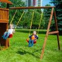 Jungle Gym Swing Module (без сидушек) Дополнительный модуль Технические характеристики: . Рекомендуемый возраст: от 3 лет . Материал: импрегнированная сосна . Устойчивая безопасная конструкция . Легкий и простой монтаж не требует цементирования . Соответствует европейским стандартам: EN 71-1, 71-2, 71-8, 71-9 . Артикул: JM1 . Гарантия: 2 года . Торговая марка: Голландия . Страна изготовления: Китай . Допустимое количество детей: 2 . Максимальный вес ребенка: 50 кг В комплекте: . Древесина для каркаса . Набор инструментов . Скобы и крепежные болты . Металлические кронштейны . Металлический логотип . Инструкция по сборке Размеры, вес и объем в упаковке: - 1 упаковка: 240 х 23 х 10 см - 1 упаковка: 240 х 23 х 10 см - общий вес в упаковке: 25 кг - объем в упаковке: 0,08 мі Размеры (Д.Ш.В.): 240 х 240 х 220 см Вес: 22 кг Внимание! Сиденья в комплект поставки не входят. Описание: Jungle Gym Swing Module (без сидушек) - дополнительный модуль для детских комплексов Jungle Gym. Это классический комплект, который позволяет построить двойные качели, в него включены все необходимые крепления, инструменты для строительства каркаса, так что, никаких проблем не возникнет. Одновременно на модуле могут находиться 2 детей. Максимальный вес ребенка не должен превышать 50 килограмм. Если вам кажется, что на вашем участке вы создали идеальную игровую площадку для детей, присмотритесь есть ли там качели ? Ведь нет такого ребенка, который не обожал бы "взмывать выше ели". Любой из комплексов Jungle Gym может быть оборудован качелями, а именно - дополнительным модуль Jungle Gym Swing. Стоит отметить, что к данному модулю идеально подходят сиденья Swing Seat и Sling Swing, которые вы можете приобрести дополнительно. Сделайте игровую площадку для детей еще более совершенной! Модуль изготовлен из импрегнированной сосны. Особенность такой обработки дерева заключается в то, что его пропитывают антисептиком с помощью вакуума под высоким давлением: раствор глубоко проникает в древ