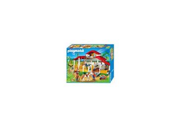 В конюшне можно разместить 3 лошадки. На втором этаже есть запас корма для них. В игровом наборе: 2 фигурки взрослых лошадей и 1 фигурка маленького жеребенка, 3 фигурки людей - 2 взрослых и 1 ребенок, различные предметы необходимые для ухода за лошадьми и уборки в конюшне (щетки, седла, метла, тележка и др.). Размеры конюшни: 47 х 25 х 22,5 см. Размеры упаковки: 50 х 13 х 40 см. Производитель: Playmobil, Германия None
