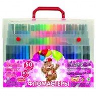 Набор фломастеров FANCY,100шт., 50 цв., п/п /чемодан/ с ручкой, 2 дизайнаПолипропиленовый корпус.Цветной вентилируемый колпачок.Экологически чистые.Насыщенные цвета.В наборе 100 штук, 50 цветов. Минимальная сумма заказа 2000 рублей. Есть доставка.