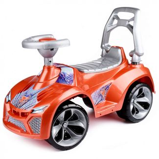 Эта каталка понравится юному автомобилисту. Она идеально подойдет для малышей от 10 месяцев. Она станет надежным другом Вашему малышу, который сможет сначала использовать ее как ходунки, опираясь на спинку каталки и делая свои первые шаги. Конструкция каталки сделана таким образом, что детская машинка полностью защищена от переворачивания или других происшествий на дороге- есть упоры спереди и сзади корпуса каталки. Каталкой управлять предельно просто, это поймет даже самый маленький ребенок. Малыш может садиться на удобное сиденье, отталкиваться ножками и ехать, держась за руль каталки и поворачивая передними колесами. А высокая спинка позволит малышу отдохнуть в долгой поездке. Клаксон на руле обезопасит и предупредит прохожих на дороге. Каталка сделана из высококачественного европейского пластика, который не подвержен перепаду температур, не деформируется и не выгорает под солнцем. Выполнен по самым современным европейским технологиям и соответствует всем высочайшим стандартам качества и безопасности, разработанные специально для детских товаров. Польза каталки для малышей давно доказана. Езда на каталке стимулирует ребенка к активным движениям и развитию. В процессе игры развивается общая моторика, умение управлять своим телом. В процессе езды ребенок познает окружающий мир, фантазирует и развивает воображение. Очень устойчивые, широкие и проходимые колеса легко справятся с любым покрытием дорог. Крутящиеся большие колеса позволяют ездить самому, катать машину руками или возить за веревочку. Эту каталку можно использовать и дома, и на улице. Яркий цвет и стильный дизайн покорит с первого взгляда и Ваш малыш не захочет расставаться с каталкой. Под сиденьем расположен вместительный багажник, а за сиденьем расположена очень удобная высокая спинка- ручка, которую можно использовать как ходунки, опираясь на нее при ходьбе. Это очень удобно. Максимальная нагрузка 25 кг. Рекомендуется для детей от 10 месяцев. RT рекомендует. Сделано в Европе. None Есть дост