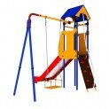 ROMANA Богатырь Плюс 2 (без качелей) Дачный комплекc Технические характеристики: . Для детей от 3 лет . Материал: металл, пластик . Стойки: труба диаметром 42 мм, толщиной 1,5 мм . Диаметр ступени: 25 мм . Ширина ступени: 49 см . Шаг ступени: 26 см (30 см на наклонной) . Высота горки: 90 см . Длина горки: 180 см . Ширина горки: 39 см . Стойкая покраска с защитой от выгорания . Отверстия закрыты декоративными пластиковыми деталями, исключающими возможные травмы . Быстросъемные клипсы-катушки фиксируют навесное оборудование исключая скольжение по трубе . Регулировка высоты навесного оборудования . Выступающие крепежные элементы закрыты пластиковыми заглушками, исключающими возможные травмы . Навесное оборудование изготовлено из атмосферостойких материалов . Температурный диапазон: от -60 до + 60° С . Способ установки: на специальные закладные, бетонирование . Упаковка: картонная коробка . Артикул: R 103.12.05 . Гарантия: 1 год . Торговая марка: Россия . Страна изготовления: Россия . Допустимая нагрузка на навесное оборудование: 50 кг . Допустимая нагрузка на турник: 100 кг . Максимальная допустимая нагрузка: 100 кг Комплектация: . Горка . Кольца гимнастические . Веревочный лаз . Шведская стенка . Рукоход . Турник Размеры и вес в упаковке: - 1 упаковка: 116 х 54 х 14 см - 1 упаковка: 141 х 35 х 5 см - 1 упаковка: 141 х 35 х 5 см - 1 упаковка: 180 х 40 х 20 см - вес в упаковке: 65 кг Размеры (Д.Ш.В.): 357 х 244 х 186 см Вес: 57,2 кг Описание: Дачный комплекс Богатырь Плюс 2 (без качелей) это детский спортивно-игровой комплекс, который подойдет не только для дачного участка, но и для площадки в обычном дворе и для спортивной площадки в дошкольных и школьных заведениях. Модель дает ребенку начальную физическую подготовку, помогает развить ловкость и гибкость. В комплекте: горка, кольца гимнастические, веревочный лаз, шведская стенка, рукоход, турник. Качественные материалы изготовления надолго сохраняют яркость цвета и рассчитаны на любые погодные условия,