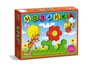 Возрастное ограничение: 3+ Мозаика с прямоугольным пластмассовым полем. Фишки кладутся на поле. Фишки четырех цветов. Фишка шестигранная с плоским верхом. Размер фишки 30 мм. 110 шт. Книжка-подсказка с схемами в комплекте. None Страна производства: Россия Есть доставка.
