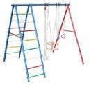 Вертикаль А Дачный спортивный комплекс Технические характеристики: . Предназначен для установки на улице на травяном газоне . Материал: стальные трубы диаметром 40 и 25 мм, пластмасса . Длина перекладин лестницы: 45 см . Способ установки: бетонирование . Возможность легко разобрать комплекс и убрать на зиму . Окрашен импортными порошковыми красками для эксплуатации на улице . Крепежные элементы закрыты пластмассовыми заглушками . Торговая марка: Россия . Страна изготовления: Россия . Нагрузка на верхнюю опору: 90 кг Комплектация: . Пластмассовые качели . Канат цветной синтетический . Кольца гимнастические пластмассовые Размеры и объем в упаковке: - 1 упаковка: 247 х 21 х 12 см - 1 упаковка: 51 х 51 х 14 см - объем в упаковке: 0,1 мі Размеры (Д.Ш.В.): 230 х 240 х 220 см Вес: 42 кг Внимание! Цвет комплекса может отличаться от приведенного на фото. Описание: Дачный спортивный комплекс Вертикаль А представляет собой надежную металлоконструкцию, выполненную из стальных труб, окрашенных порошковой краской, устойчивой к ультрафиолетовому и уличному воздействию. Компактная конструкция, занимая не много места, позволяет выполнить множество упражнений, на развитие мышц спины, пресса, рук и ног. Вертикаль А предназначен для весёлого время препровождения детей на открытом воздухе. Дачный спортивный комплекс Вертикаль А идеально подойдет для дачного участка или детской площадки во дворе дома, для многодетных семей и для семей, которые любят собираться большими компаниями. Стальные А опоры и перекладина для навесного оборудования выполнены из трубы диаметром 40 миллиметров с толщиной стенок 1,5 миллиметра. Для увеличения устойчивости и безопасности А опоры соединены стальной трубой диаметром 25 миллиметров с толщиной стенок 1,5 миллиметра. Комплекс способен выдержать нагрузку в 90 килограмм. В комплект поставки включены: пластмассовые качели, канат цветной синтетический, кольца гимнастические пластмассовые. Легко монтируется и демонтируется. К основанию комплекс