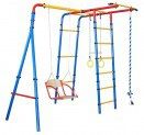 Юный Атлет Уличный-Лайт Детский спортивный комплекс Технические характеристики: . Возрастная категория: 4+ . Материал: металлическая труба, диаметром 42 мм, толщиной 1,5 мм . Диаметр ступени: 25 мм . Ширина ступени: 0,45 м . Шаг ступени: 0,25 м . Тип ступеней: металл . Тип турника: нерегулируемый . Способ установки: бетонирование стоек (закладные - стаканы в комплекте) . Упаковка: картонная коробка . Цвет: синий-желтый-красный . Гарантия: 1 год . Торговая марка: Россия . Страна изготовления: Россия . Допустимая нагрузка на навесное оборудование: 100 кг . Допустимая нагрузка на комплекс: 120 кг Комплектация: . Качели . Кольца с перекладиной . Канат . Турник Размеры, вес и объем в упаковке: - 1 упаковка: 122 х 44 х 14 см - 1 упаковка: 122 х 44 х 14 см - общий вес в упаковке: 48 кг - объем в упаковке: 0,16 мі Размеры (Д.Ш.В.): 210 х 155 х 190 см Вес: 45 кг Описание: Детский спортивный комплекс Юный Атлет Уличный-Лайт предназначен для выполнения различных спортивных упражнений, способствующих более полному физическому развитию детей в возрасте от 4+. ДСК Юный Атлет Уличный-Лайт идеально подойдет для дачного участка или детской площадки во дворе дома, для многодетных семей и для семей, которые любят собираться большими компаниями. Детский спортивный комплекс Юный Атлет Уличный-Лайт представляет собой надежную металлоконструкцию, выполненную из стальных труб, окрашенных порошковой краской, устойчивой к ультрафиолетовому и уличному воздействию. Компактная конструкция, занимая не много места, позволяет выполнить множество упражнений, на развитие мышц спины, пресса, рук и ног. Металлические опоры выполнены из трубы диаметром 42 миллиметра с толщиной стенок 1,5 миллиметра. Для увеличения устойчивости и безопасности А опоры соединены стальной трубой. Комплекс способен выдержать нагрузку до 120 килограмм. В комплект поставки комплекса входит достаточное количество игровых снарядов: качели, кольца с перекладиной, канат, турник. Данная модель комплектуется уже в ста