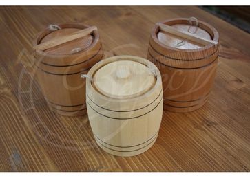 Производим кадки и бочонки небольшого размера из липы для хранения и транспортировки меда.В таких бочках мед хранится очень долго и не впитывает посторонних запахов.Обработка внутренних стенок воском исключает процесс окисления.Маленькие бочонки производятся от 0,2 литров.На стенки бочонка по желанию заказчика можем нанести Ваш логотип или любую другую лазерную гравировку