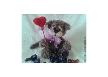 малыш связан из фактурной пряжи .очень приятный,тискательный :-):-)он станет прекрасным подарком ко дню всех влюбленных.трогательный котик,с грустными глазками не оставит равнодушным никого:-)