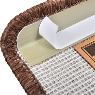 Коврик фиксируется на ступени при помощи липкой ленты, усиленный уголок. Материал: ворс полипропилен, подложка латекс. None