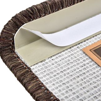 Коврик фиксируется на ступени при помощи липкой ленты, усиленный уголок. Материал: ворс полипропилен, подложка латекс. None