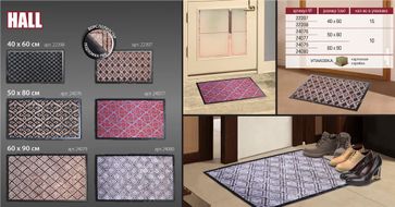 Очищает обувь от грязи и задерживает влагу при входе в помещение, не скользит. Материал: ворс полиэстер, подложка пвх. None