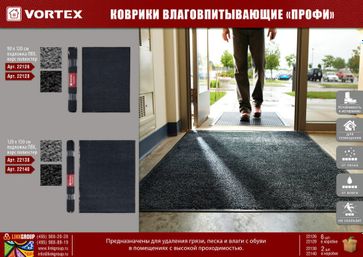 - Коврик влаговпитывающий Vortex Профи 120х150 см черный 22140 по выгодной цене 7 356 р. руб.;