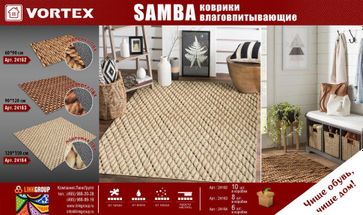 - Коврик влаговпитывающий Vortex Samba Плетение 90х120 см 24163 по выгодной цене 2 604 р. руб.;