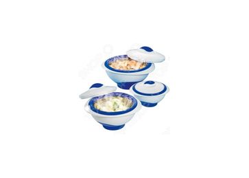 С помощью этих термочаш вы сможете держать блюда горячими или холодными несколько часов! Чаши изготовлены из белого пластика с синими краями и вставками из нержавеющей стали. Чаши имеют следующие объемы: 2 л, 1 л, 0,5 л. Они просты в использовании и легко моются. None Можно купить без предварительного заказа. Возможен самовывоз. Есть доставка.