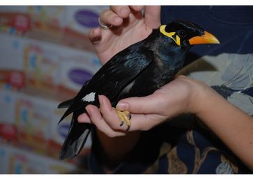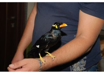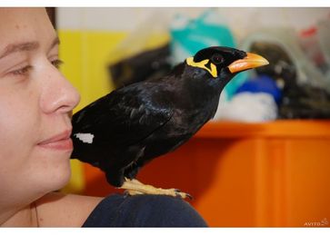 Шикарная экзотическая птица - Индийская Священная Майна. Очень разговорчивое и добродушное существо