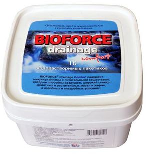 - Очиститель канализацинных труб и жироуловителей Bioforce Drainage Comfort по выгодной цене 4 440 р. руб.;