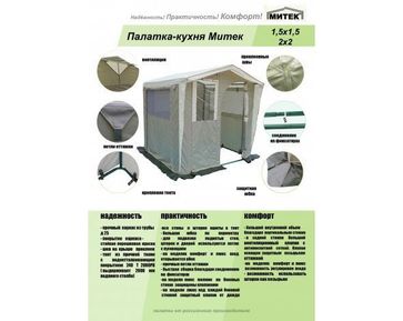 - Палатка-кухня Митек Стандарт 1,5х1,5 (2 места) в каталоге Другие товары для дома и дачи в Москве;