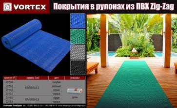 - Противоскользящий коврик ПВХ Vortex Zig-Zag 5 мм 0,9х10 м черный 22157 по выгодной цене 15 862 р. руб.;