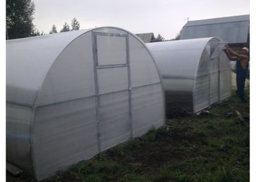 Размеры - Ширина теплицы 2,5 либо 3 метра, высота теплицы 2 метра, длина 4, 6, 8, и более метров кратно 2 метрам. Каркас теплицы– квадратная профильная труба 20*20, расстояние между дугами 1 метр, каркас усилен верхней скрепляющей дуги направляющей (предотвращает провал поликарбоната под весом снеговой шапки). Покраска теплицы– эконом вариант покраски каркаса (грунт-эмаль, цвет серый, коричневый). Комплектация теплицы– две форточки и две двери в противоположных торцах. Поликарбонат - Российский, толщина 4мм Комплект фурнитуры и саморезов– есть. Крепление поликарбоната- кровельные саморезы с резиновой пресс шайбой. Особенности -теплица имеет сравнительно невысокую цену, при высоких эксплуатационных характеристиках. Монтаж:Цельногнутые дуги, и цельносварные торцы, обеспечивают легкость сборки. 95% покупателей самостоятельно устанавливают данную теплицу. Возможна установка теплицы без фундамента. Гарантия на теплицу с покраской грунт-эмаль 1 год. Срок эксплуатации более 10лет.