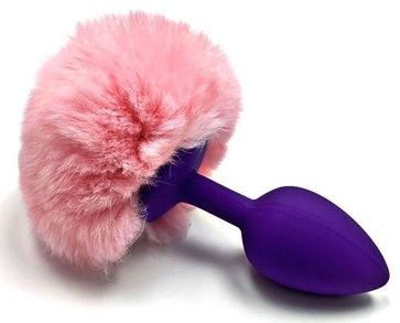 Фиолетовая анальная пробка с пушистым нежно-розовым хвостиком зайки (233044)