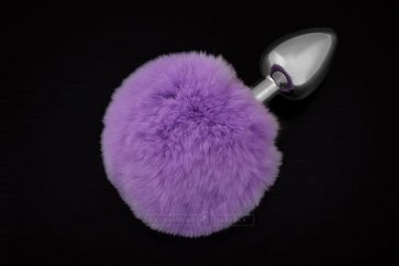 Маленькая серебристая пробка с пушистым фиолетовым хвостиком (83595)