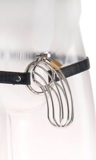 Вы думали пояс верности существует только для женщин? Оказывается нет, нашелся девайс и для настоящих самцов. Возьмем быка за рога и пенисы в цепкие женские ручки.<br><br> Пояс выполнен из хромированной стали. Открытость конструкции, позволяет проводить гигиенические процедуры без снятия пояса, тем самым допуская постоянное ношение.<br><br> Длина клетки - 8 см., диаметр - 4 см. <br> Запорные кольца пояса верности в количестве 2 штук раскладываются в шарнирном основании. <br> В комплекте: клетка, замок с ключами, запорное кольцо (диаметр 4 см.), запорное кольцо (диаметр 4,5 см.). None