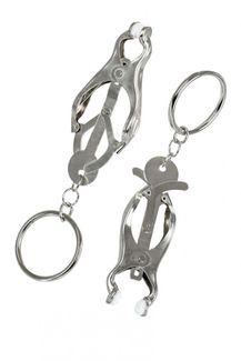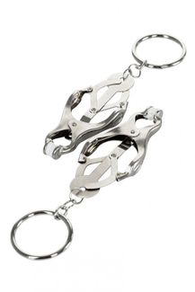 Зажимы для сосков с пружинным механизмом. Эта конструкция одна из самых жестких, но позволяет разнообразить игру: на кольцам можно подвесить дополнительные грузы или украшения. Все зависит от ваших желаний! None