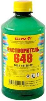 Назначение: Применяют в производстве и в разбавлении до рабочей вязкости нитроцеллюлозных лаков и эмалей марок НЦ. Так же растворитель 646 предназначен для разбавления и доведения лакокрасочных материалов до рабочей консистенции: глифталевых (ГФ), меланиноамидных (МЛ), акриловых и эпоксидных лакокрасочных материалов, шпатлевок. Также является универсальным растворителем. Лаки: НЦ-62, НЦ-218, НЦ-243. Грунтовки: НЦ-081, МС-067, МЧ-042, ЭП-0199. Эмали: НЦ-132, НЦ-170, НЦ-184, КО-8101, КО-8104, ЭП-140, ЭП-773. Шпатлевки: НЦ-007, НЦ-008, НЦ-009, ЭП-0010, ЭП-0020. В быту растворитель Р-646 используется как универсальный разбавитель многих красок.Свойства: Не замерзает. При высыхании не должно оставаться побеления пленки, которая должна иметь гладкую поверхность без белесоватых или матовых пятен, после высыхания придает краскам хороший блеск. Наличные, банковская карта, безналичный расчет Страна производства: Россия Возможен самовывоз. Есть доставка.