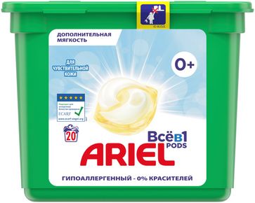 - Ariel Pods для Чувствительной Кожи Все в 1 20 капсул в пачке по выгодной цене 1 190 р. руб.;