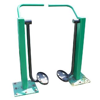 - Слой порошковой краски Цвет стандартный - синий с черным Возможны варианты исполнения с использованием зеленого цвета Диаметр ручек 30мм Угол наклона ручек - 125 градусов Для предотвращения травм спортсменов концы прямоугольного профиля заварены На узлы вращения установлены подшипники В комплект входит 8 анкерных болтов М16х125 для монтажа тренажера на бетонной площадке Для безопасности в основании ног тренажера устанавливаются резиновые накладки, которые закрывают выступающие элементы анкерных болтов предоплата