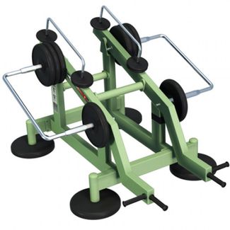 Тренажер Street Barbell Light Трицепс Тренажер предназначен для развития трехглавой мышцы плеча. Упражнение - Жим вниз на трицепс. Технические характеристики Габариты ДхШхВ, мм: 2350 х1610х990. Вес общий: 305 кг. Диски 10 шт по 10 кг -100 кг 6 шт по 2,5 кг-15 кг Описание Несущая конструкция изготовлена из профиля 120х60 мм толщина стенки 3 мм. Покраска рамы выполнена в 2 слоя, что обеспечивает устойчивость к ударам и атмосферным осадкам. Цинковая грунтовка. Слой порошковой краски. Нагрузка меняется путем перемещения дисков по направляющей. Диск стальной, цельнометаллический, обрезиненный. Диски Стандарт с посадочным диаметром 50 мм. Цвет стандартный - синий или зеленый с черным. Возможны варианты исполнения с использованием других цветов Диаметр ручек 42 мм. Для предотвращения травм спортсменов концы прямоугольного профиля заварены. На спинку и сиденье, для комфортного использования установлены накладки из бакелитовой фанеры. На узлы вращения установлены необслуживаемые подшипники закрытого типа. Конструкция тренажера делает его устойчивым к опрокидыванию, что позволяет устанавливать без крепления к поверхности. На тренажере имеются транспортировочные петли для установки краном.Тренажеры могут крепиться к бетонному основанию анкерными болтами М16х125 Тренажер укомплектовываться резиновыми накладками, которые закрывают основания ног тренажера. Конструкция тренажеров защищена патентом Патент на изобретение № 2515434 предоплата