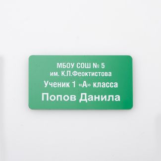 - Бейдж ученика с булавкой 90х50, пластик 1,5 мм по выгодной цене 214 р. руб.;