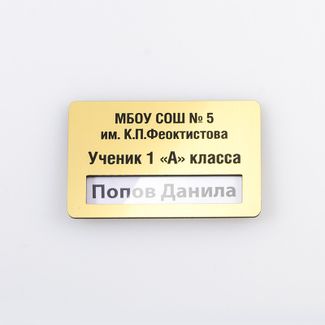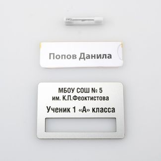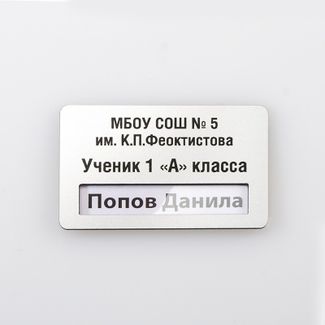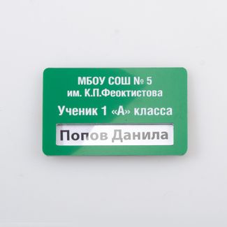 - Бейдж ученика с булавкой и информационным окном 75х50, пластик 1,5 мм по выгодной цене 254 р. руб.;