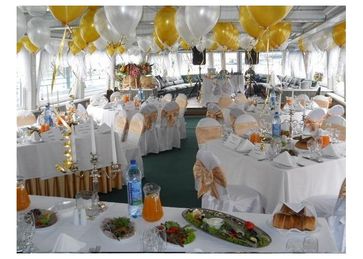 Двухпалубный теплоход "Чайка" идеальный вариант проведения выпускного вечера, последнего звонка, празднование свадеб, торжеств, организации Конференций. В отличие от других теплоходов типа Москва "Чайка" имеет собственную кухню на борту (плита, холодильная камера, раковина), что позволит гостям наслаждаться, меню, в которое входят высококачественные и вкусные блюда, прекрасно подходящие к любому торжеству. Теплоход " Чайка" имеет уникальный уютный салон, чем отличается от своих собратьев по классу Москва. Панорамное застекление обеспечивает хороший обзор как вперед по направлению движения, так и по бортам. В носовой части теплохода находится небольшой подиум с мягкими диванами по периметру, где возможна организация отдельного стола или танцплощадки. Так же полукруглая сцена позволяет выступать на ней небольшим инструментальным коллективам. Верхняя прогулочная палуба защищена тентом, вдоль бортов современные стулья и столики. Имеются две туалетные комнаты. Характеристики: Количество пассажиров До 100 человек Фуршет До 80 человек Банкет До 70 человек Длина 38 м Ширина 6.5 м