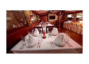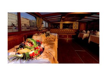 На двух палубах свободно разместятся до 45 человек при проведении экскурсии и до 35 персон при проведении банкета. В Вашем распоряжении качественная звуковая и видеоаппаратура, мягкий кожаный диван, удобные и красивые столики.