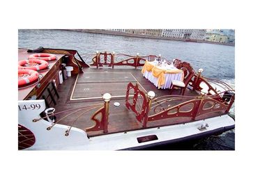 Характеристики: Количество пассажиров До 50 человек Банкет До 40 человек Скорость 16 км/ч Длина 20.3 м Ширина 5.5 м