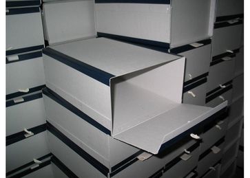 Производство/изготовление Архивные короба, архивные коробки, короба архивные. Мы изготовим для Вас короба нужного размера, из жесткого переплетного картона или электрокартона! Мы изготавливаем архивные короба оклеенные бумвинилом или крафт-бумагой, так же производим архивные коробки с проклейкой только мест сгиба картона. Мы изготавливаем клееные архивные короба и шитые металлическими скобами (нержавеющая проволока пр-во Германия, соответствует нормам предъявляемым к архивным коробам для длительного хранения документов).