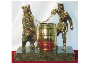 Вольная интерпретация по сюжетам серебряных вещей П. Сазикова, середины XIX века. В этой композиции выражено не только натуралистическое воспроизведение, но и практическое применение предмета. Ярмарка с «медвежьим представлением», любимое народное зрелище. Лесной зверь танцевал и радовал зрителей своей неуклюжестью, собирая на потехи старого да малого.Карандашница " None